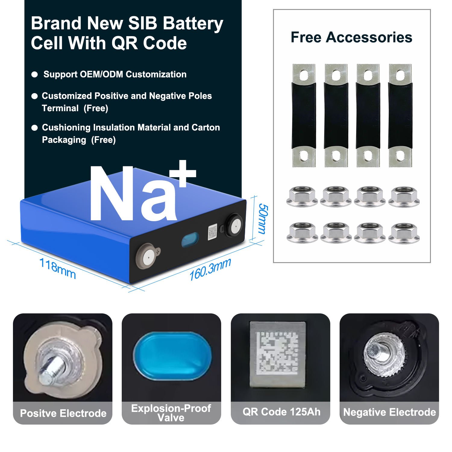 Best Selling Sodium Ion Prismatic Batteries Nafepo4 Cells 3.1V Energy Storage 3V 75Ah 50Ah 80Ah 100Ah 200Ah Natrium Ion Battery